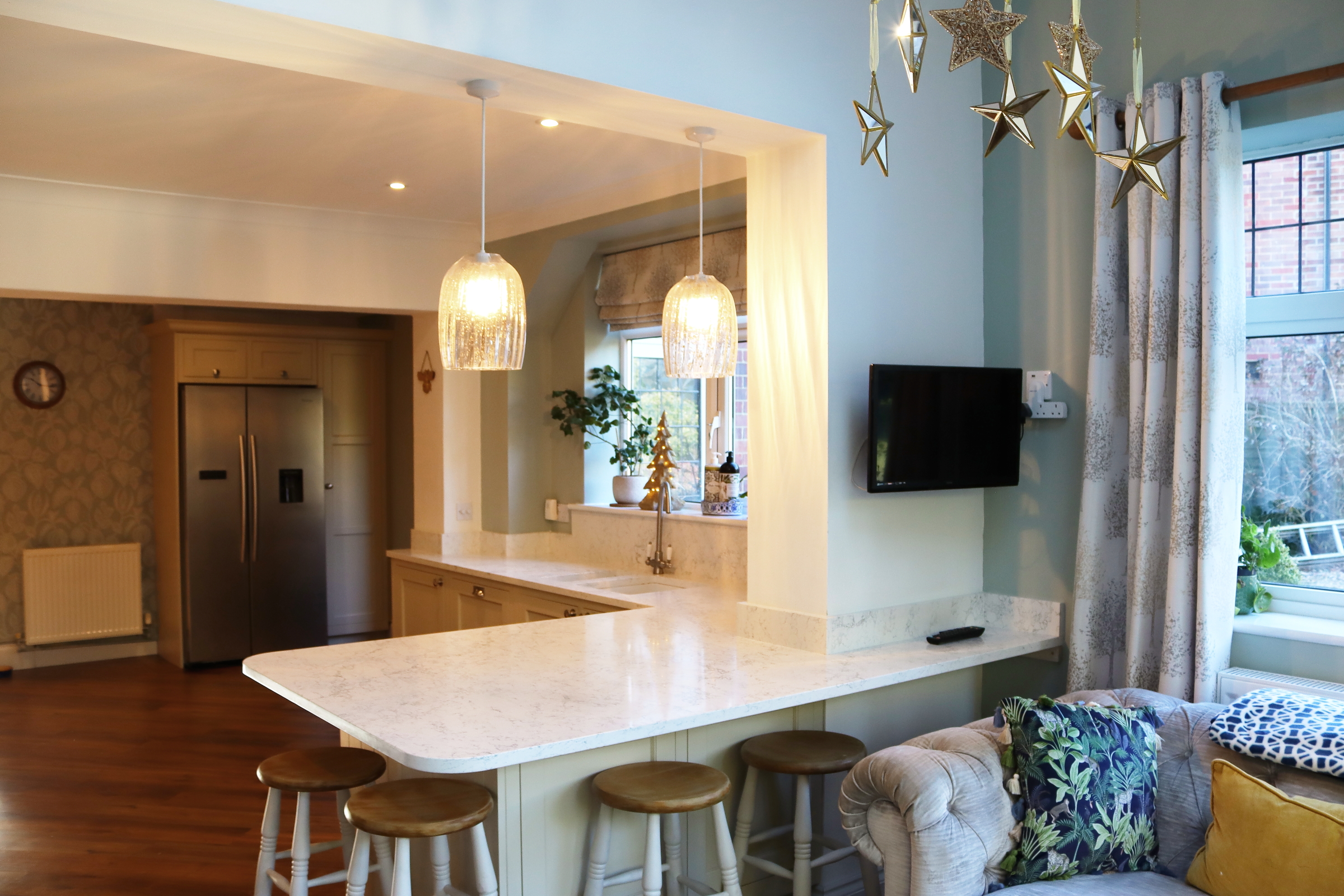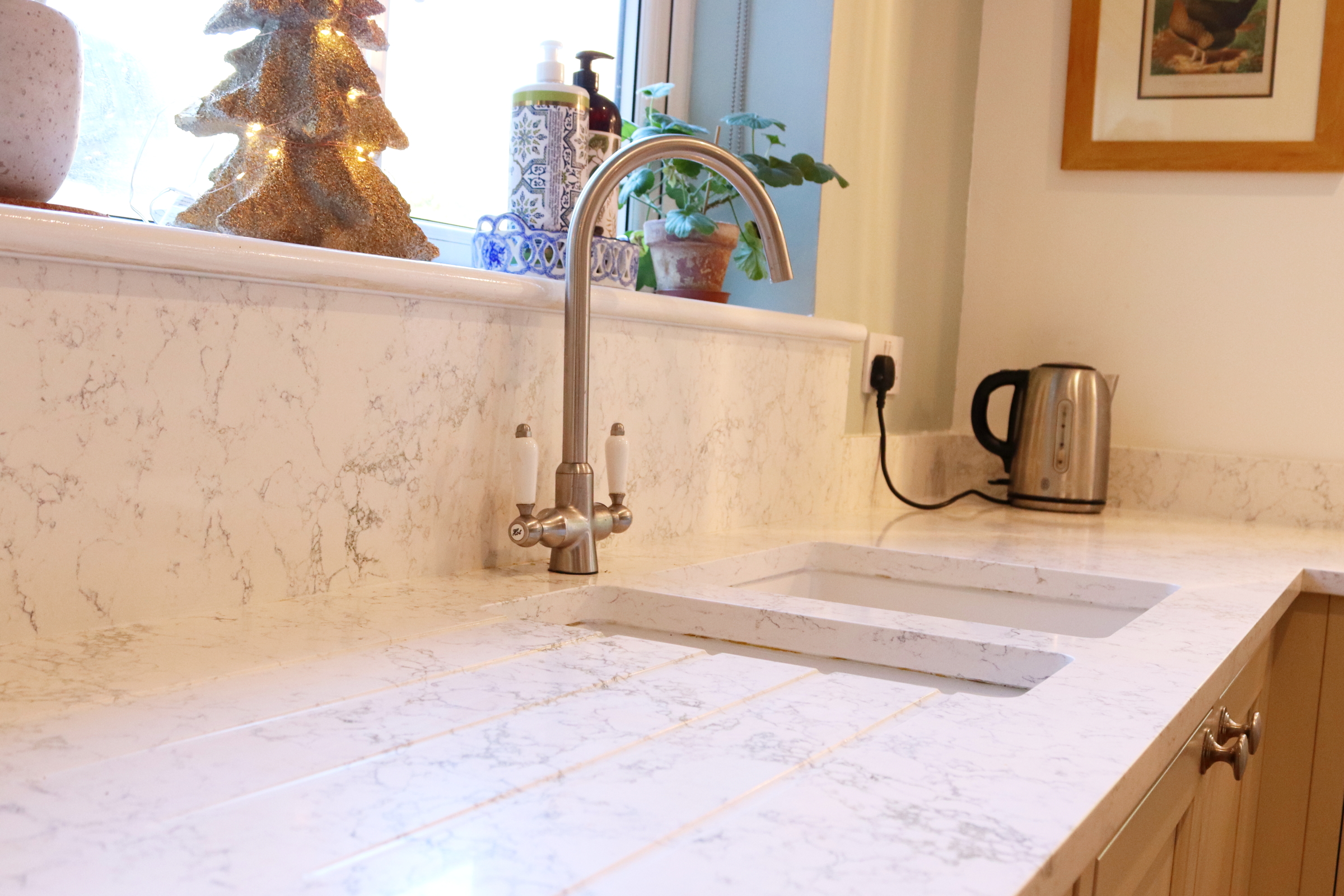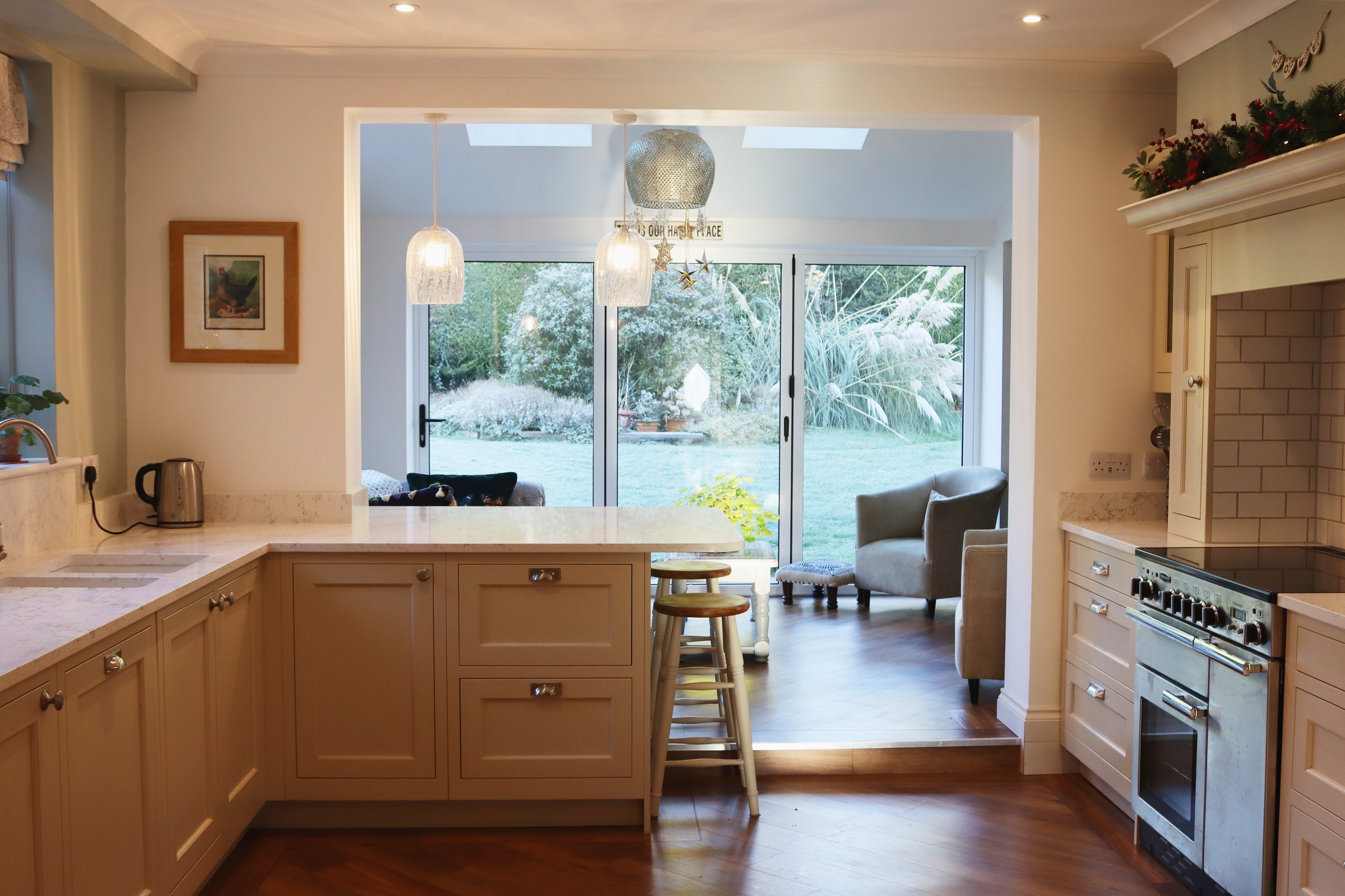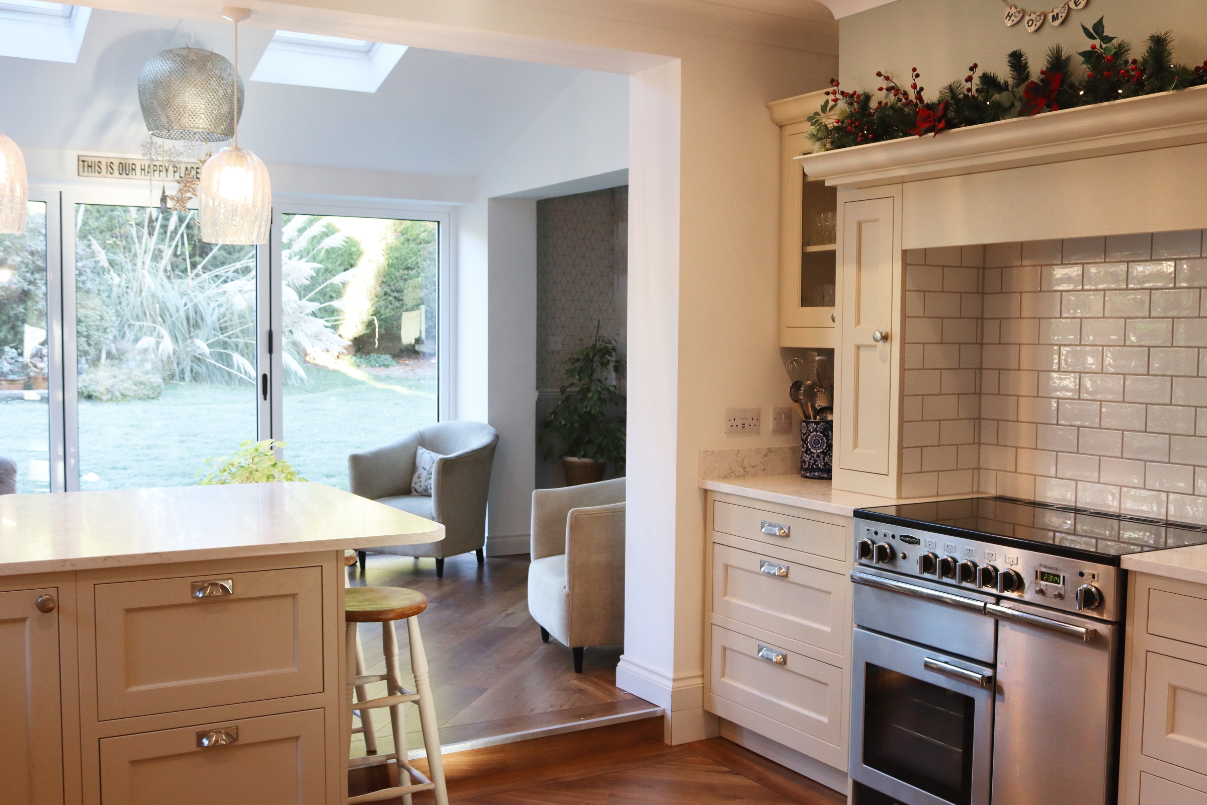 TRADITIONAL FRAMED CREAM SHAKER KITCHEN WITH ARABETTO WORKTOPS